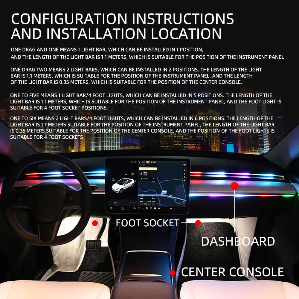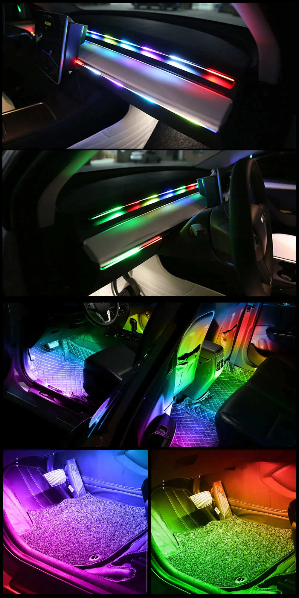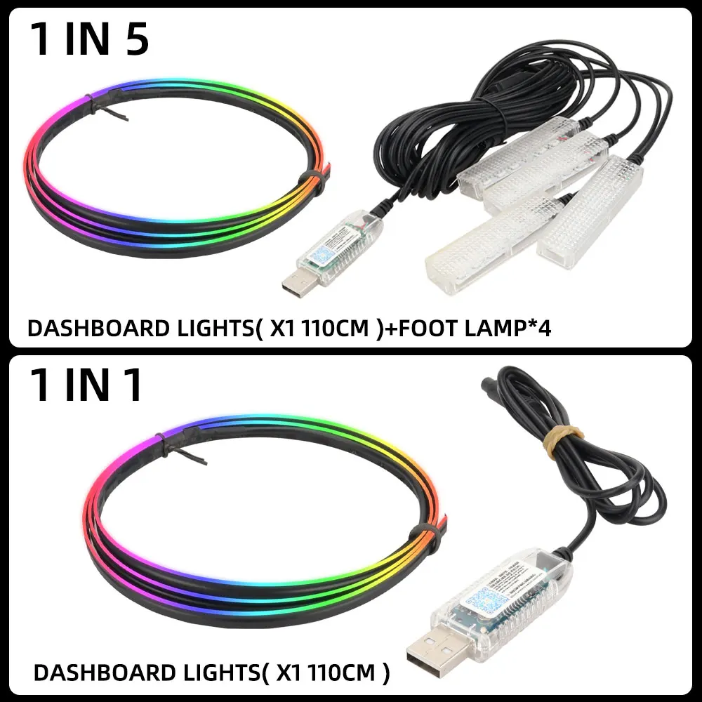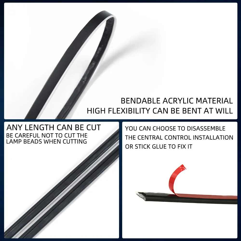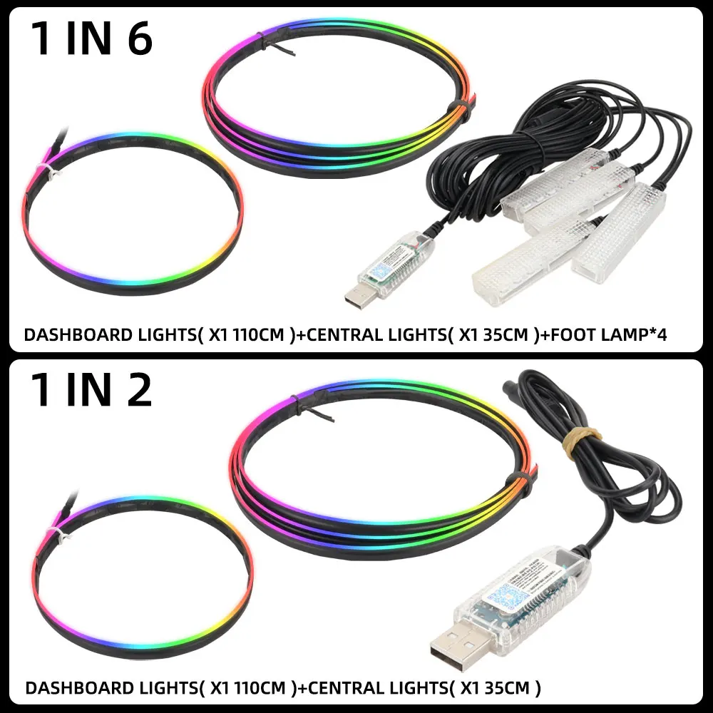 Full colors USB Car LED Ambient Light Acrylic Strips Dashboard Lights RGB Car Interior Hidden App Remote Control Atmosphere Lamp